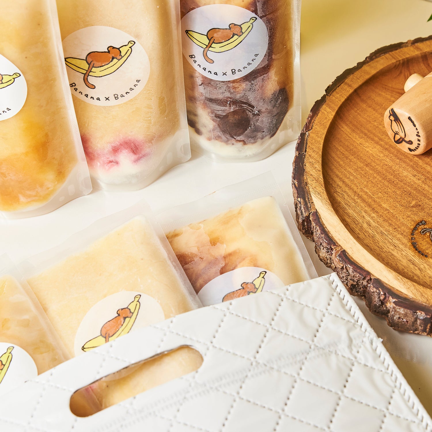 Banana×Bananaのおすすめトッピング6種類をセット、専用ハンマー、保冷バックのギフトセットです。