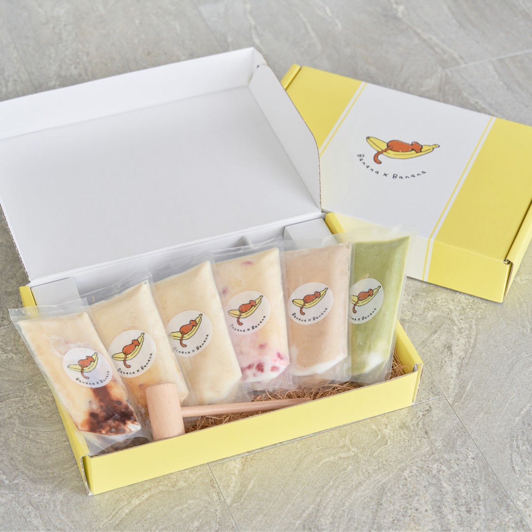 Banana×Bananaのおすすめトッピング6種類をセット、専用ハンマー、保冷バックのギフトセットです。